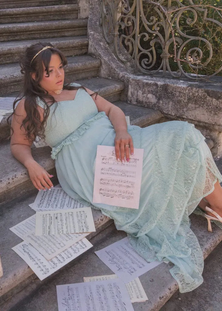 The Odette Dress is a vision of vintage elegance, designed for the modern romantic. With delicate lace tiers cascading in an ethereal silhouette, this soft blue gown exudes timeless grace. The fitted bodice, dainty shoulder straps, and flowing layers create a dreamy movement with every step. Whether you're twirling at a garden soirée or making an entrance at a grand event, the Odette Dress is your fairytale moment come to life.